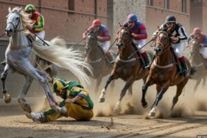Siena hosts a horse race twice a year on the Piazza del Campo. The Palio isn’t just a competition: victory doesn’t come from being the best, but from not losing—and especially from seeing your rival fall. The contrade—neighborhood-tribes who’ve hated each other since the Middle Ages with the meticulousness of a family vendetta—often prefer to see their rival stumble rather than cross the finish line themselves.